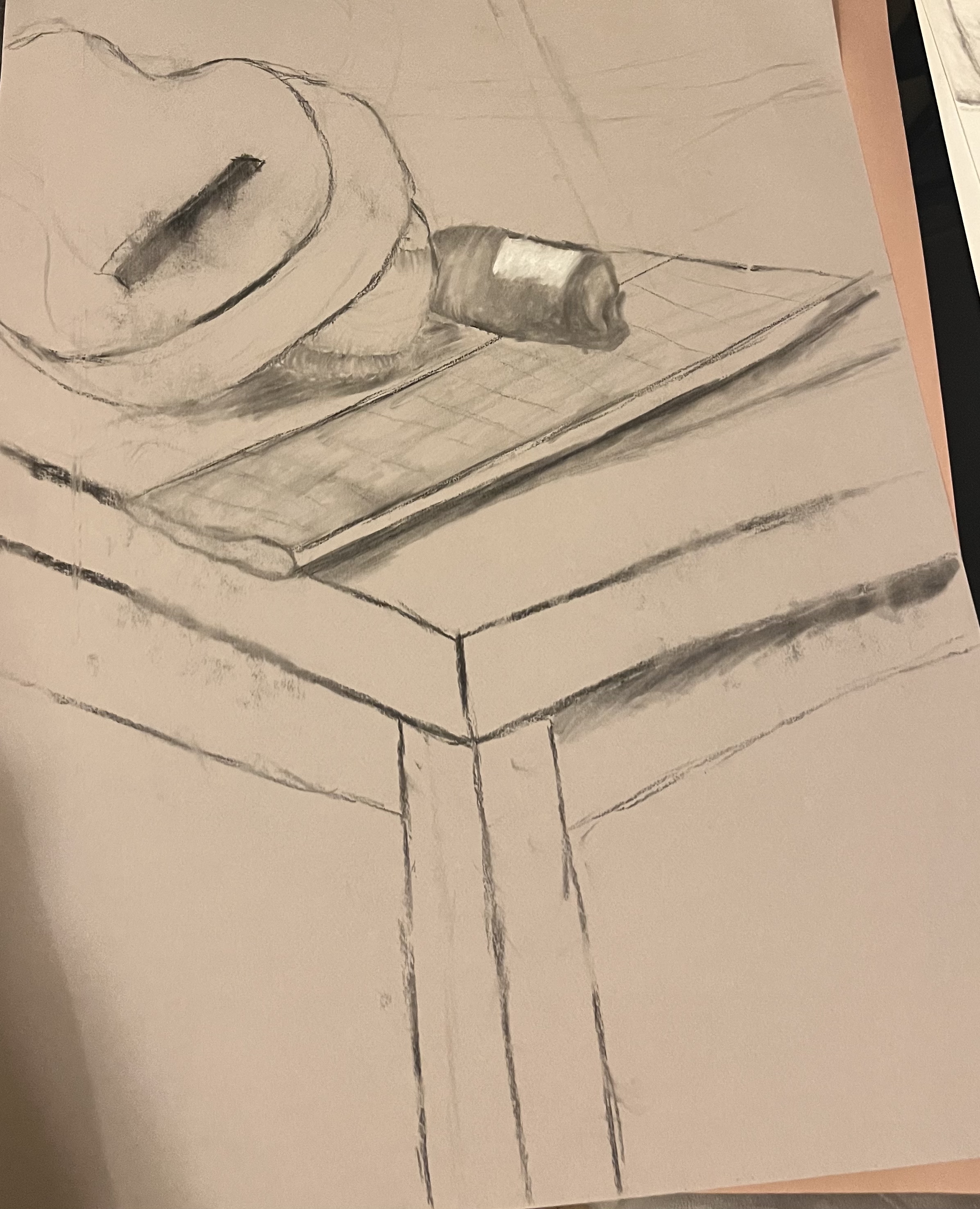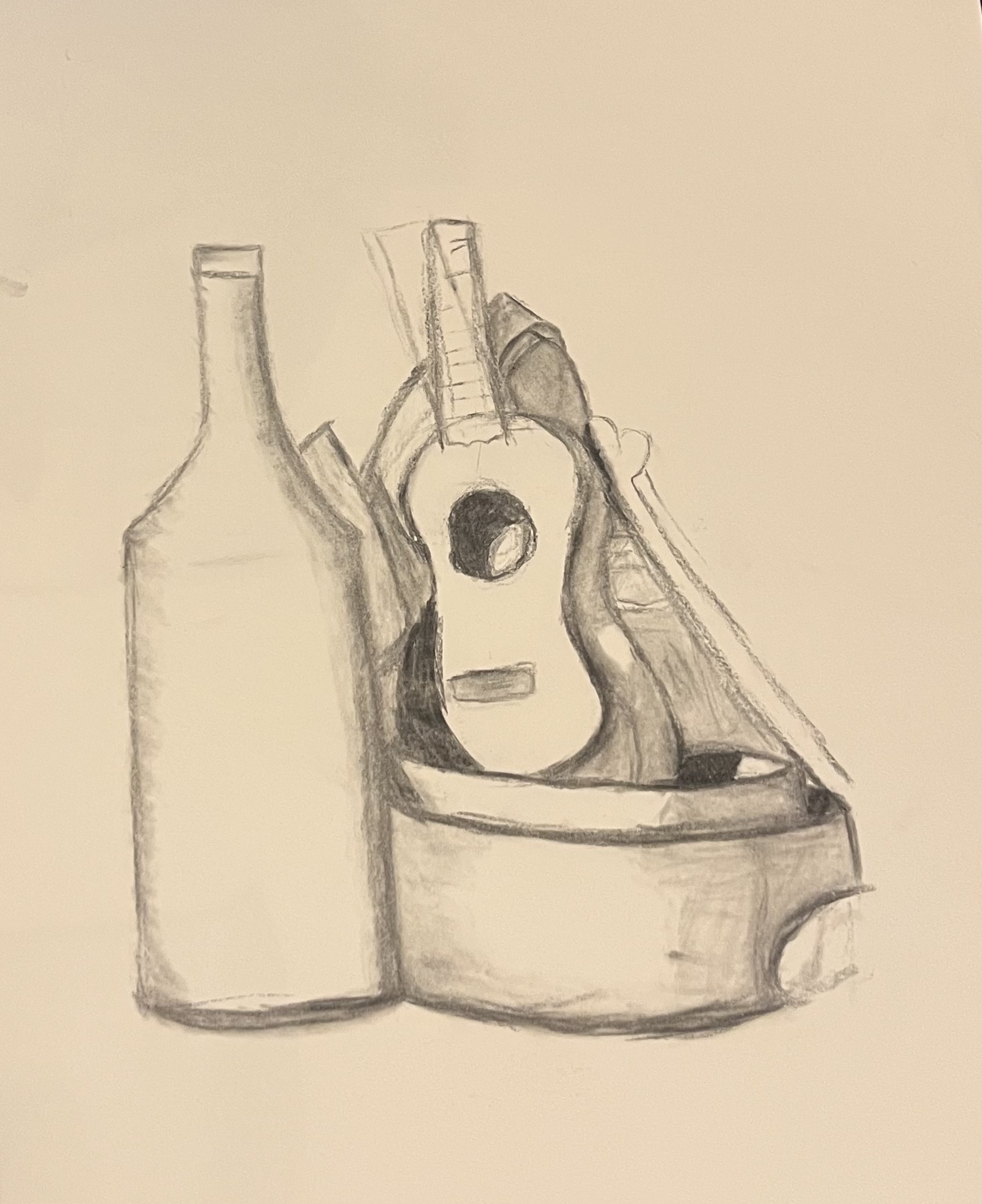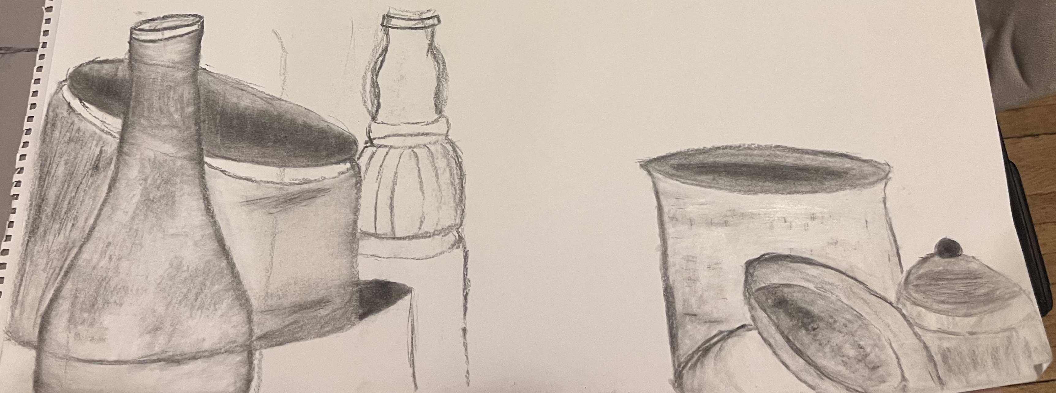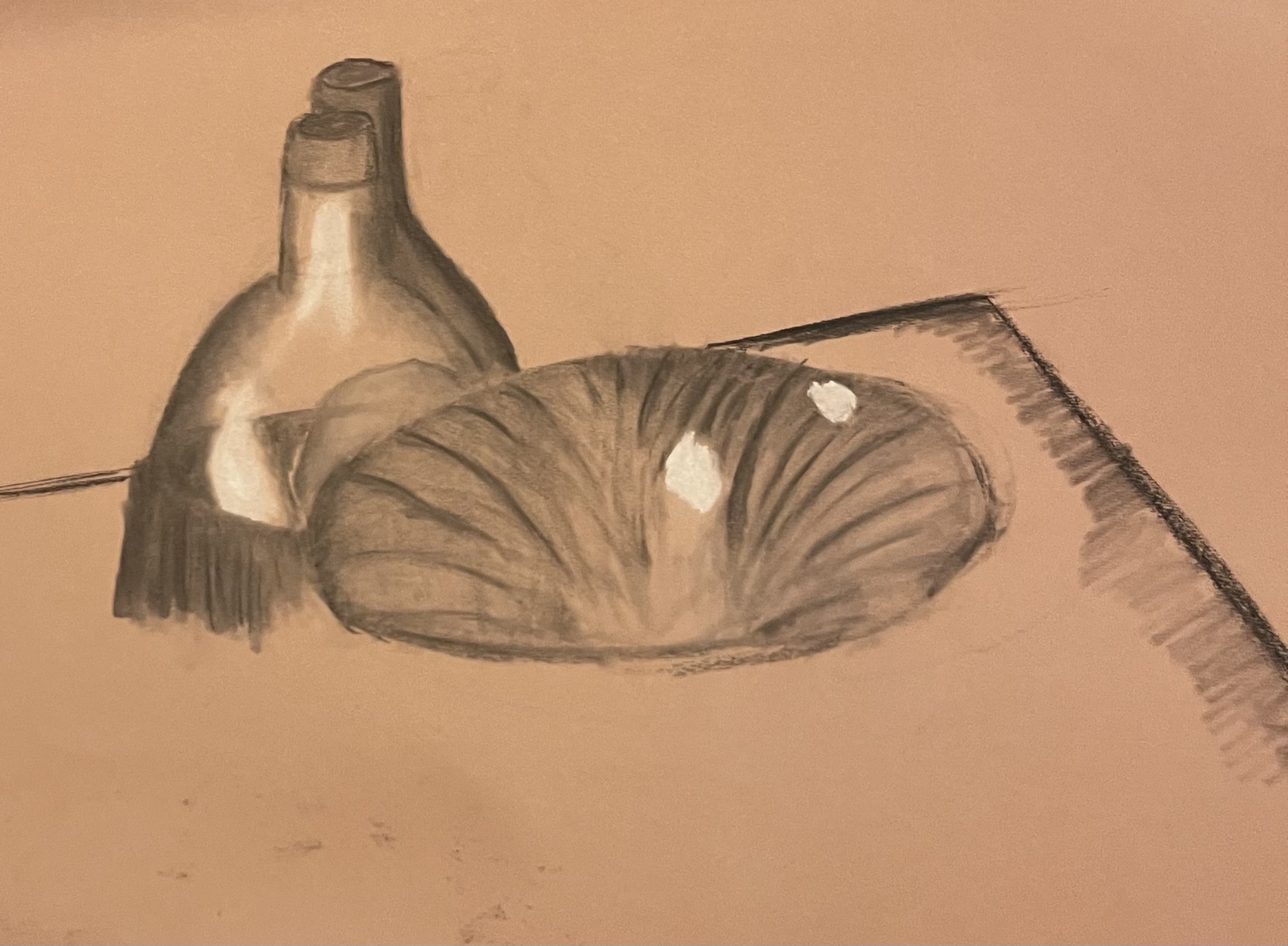 A fourth Charcaol still life focusing on the inside of a bowl.