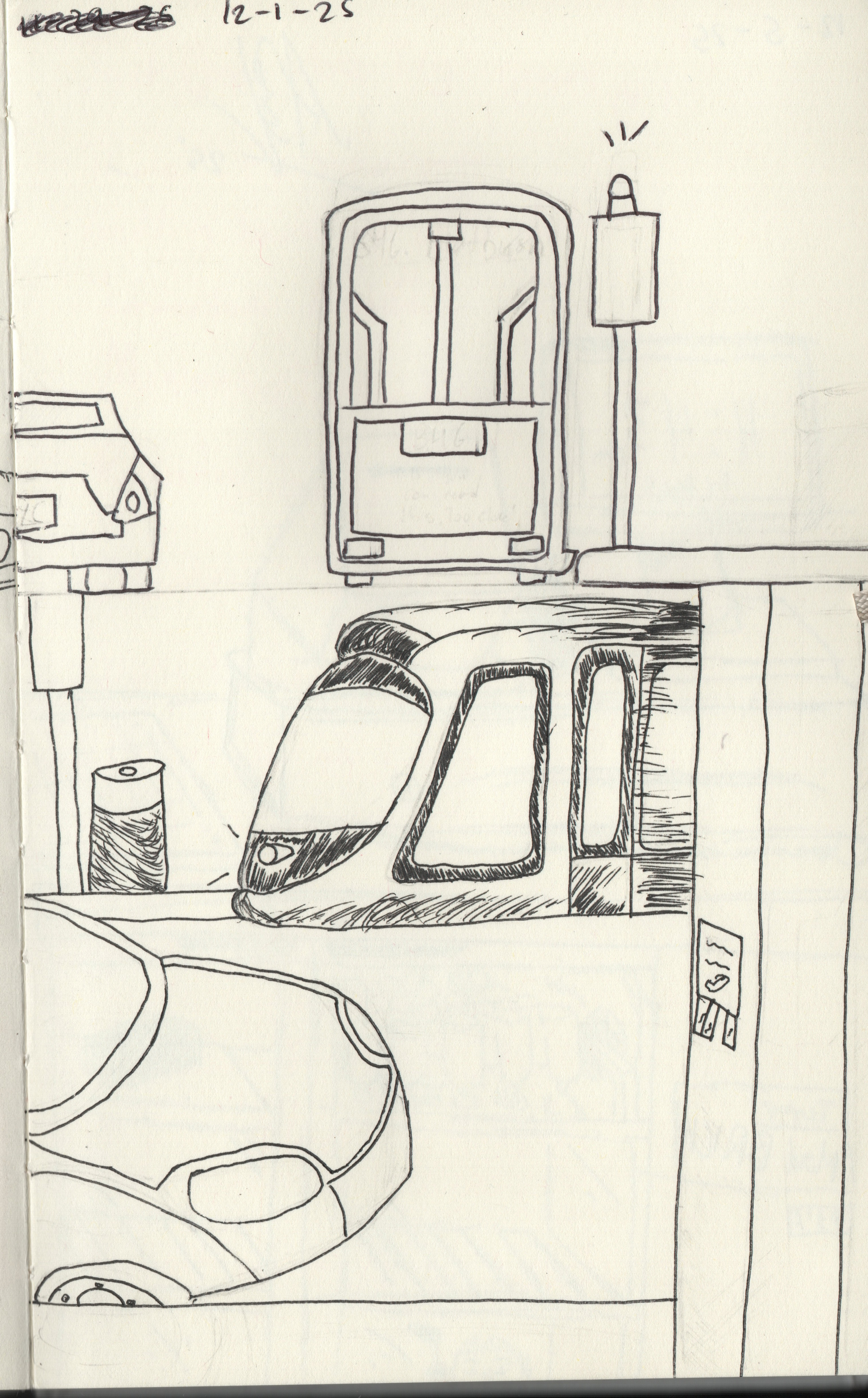 Throughout the semester of Fall 25, A sketch of a deli counter. Unfinished.